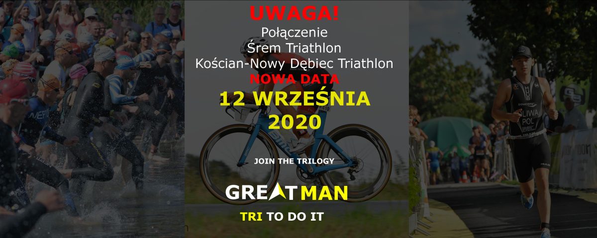 ✅Z przykrością musimy poinformować, że mimo naszych wielkich starań w tym roku zamiast dwóch zawodów Kościan-Nowy Dębiec Triathlon 22.08.2020 oraz Śrem Triathlon 13.09.2020 odbędzie się jedna połączona impreza we wrześniu w Kościanie-Nowym Dębcu 12.09.2020.