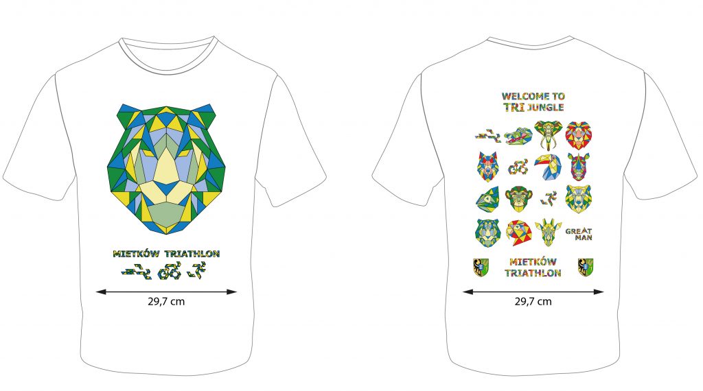 - Pakiet SPORT – biała koszulka zawodów z kolorowym nadrukiem